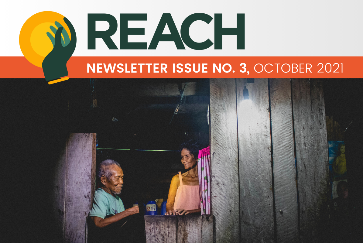 In the third issue of the Renewable Energy Access for off-grid Communities and Households (REACH) Project Newsletter, we journey to Northern Samar to document the project's first installation of solar lights in an off-grid community. We also explore how the sun's light is being harnessed to power public services, and community-based businesses and organizations around the Philippines.
