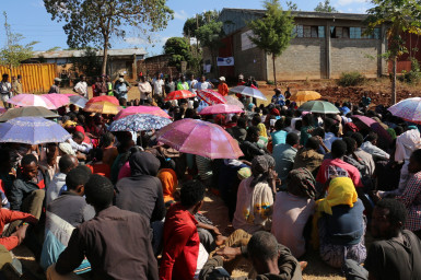 „Když jsme přišli sem, neměli jsme s sebou téměř nic. S bídou jsme si nesli nějaké oblečení na zádech. Všechno nám sebrali,” říká 67letý Fulassa Domo, postarší muž, který si přišel pro balíček s pomocí. „Mír a prosperitu pro mou rodinu, to je teď mé jediné přání,” říká 25letá matka Romanesh Assefa.